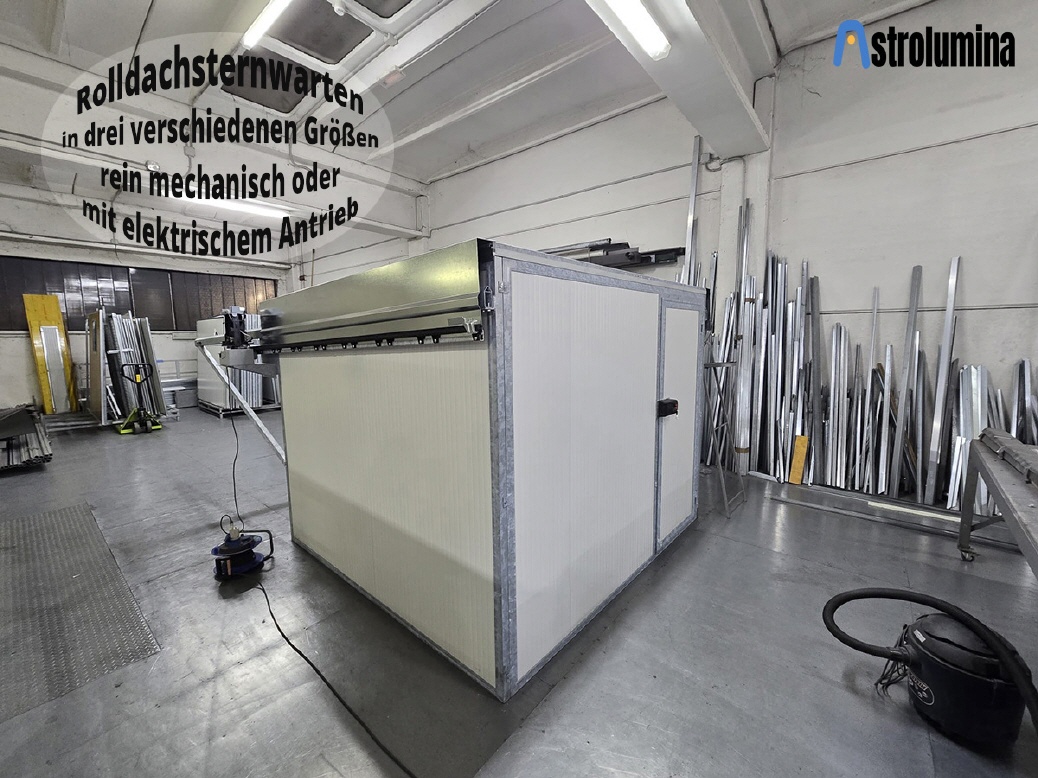Astro Clamshell-Kuppel aus Glasfasermaterial mit einem Durchmesser von 3m und einer Höhe von 3,1 m. Das Gewicht beträgt 300 kg. mehr