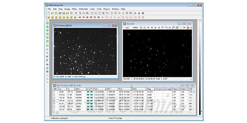 Astroart 6.0 ist eine Bildverarbeitungssoftware für Windows 2000 bis Windows 10. Die Software bietet eine umfangreiche Auswahl an Instrumenten für Bildverarbeitung und Analyse, bei vergleichsweise niedrigem Preis. Mit dem auf der CD-ROM enthaltenen GSC Katalog als auch den unterstützten USNO-SA, USNO-A, USNO-B, UCAC 2/3 Katalogen, von denen jeweils 2 gleichzeitig nutzbar sind, bietet Astroart umfangreiche Möglichkeiten zur photometrischen und astrometrischen Auswertung Ihrer Aufnahmen. Ihnen stehen zusätzlich fast alle Tools zur Visualisierung Ihrer Bilder zur Verfügung. Dazu gehören auch adaptive Filter, mit denen Sie das Letzte aus den Daten herausholen können.Aus dem Funktionsumfang: